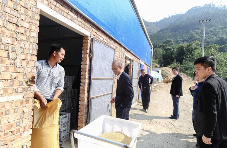 在福美農業產業園,向貧困戶了解鵪鶉養殖情況